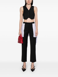 layered wool-blend trousers Highlights - Black - Wool blend - Layered design - Stripe print - Belt loops - Straight leg - Concealed front fastening - Straight hem Imported Composition Polyester 57%, Wool 37%, Polyurethane 6% SIZE & FIT Model measurements Height 5 ft 9 in(1.76 m) Bust/Chest 29.13 in(74 cm) Hips 33.07 in(84 cm) Waist 22.83 in(58 cm) FittingInformation Designed for a straight-leg fit, these trousers allow for a close fit at the waist and an unrestricted, comfortable fit over the leg Cropped in length Made from a midweight non-stretch fabric This piece fits true to size – take your usual size