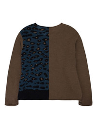 leopard-jacquard sweater Highlights - Walnut brown - Leopard pattern - Panelled design - Crew neck - Long sleeves - Rolled trim Imported Composition Wool 100%