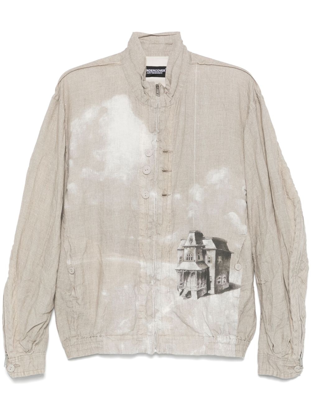 linen bomber jacket Highlights - Beige - Front zip fastening - High neck - Buttoned cuffs - Two side button-fastening pockets Imported Composition Lining: Cotton 100% Outer: Linen/Flax 100% Washing instructions Dry Clean Only