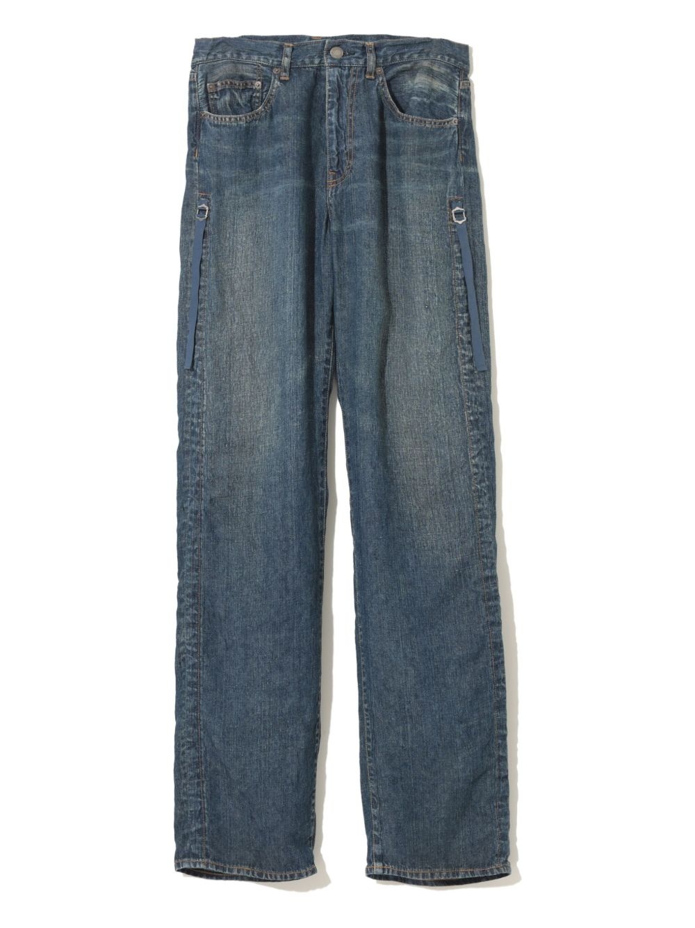 linen straight-leg jeans Highlights - Blue - Front button and zip fastening - Classic five pockets - Belt loops - Internal logo patch Imported Composition Linen/Flax 100%