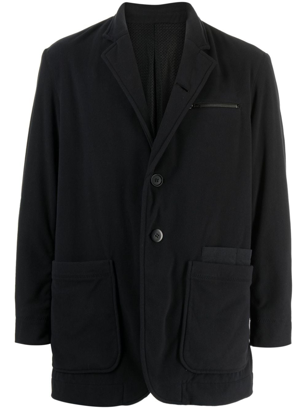 logo-applique single-breasted blazer Highlights - Black - Applique logo - Front button fastening - Long sleeves - Zip-fastening chest pocket - Two rear pouch pockets - Zip details - Cuff zips Imported Composition Body: Nylon 100% Lining: Polyester 100% Outer: Polyester 100% SIZE & FIT Model measurements Height 6 ft 2 in(1.87 m) Bust/Chest 34.25 in(87 cm) Hips 36.22 in(92 cm) Waist 29.52 in(75 cm) FittingInformation Designed to be unstructured, offering a loose fit throughout Made from a midweight non-stretch fabric, this piece offers minimal elasticity when worn This piece fits true to size – take your usual size
