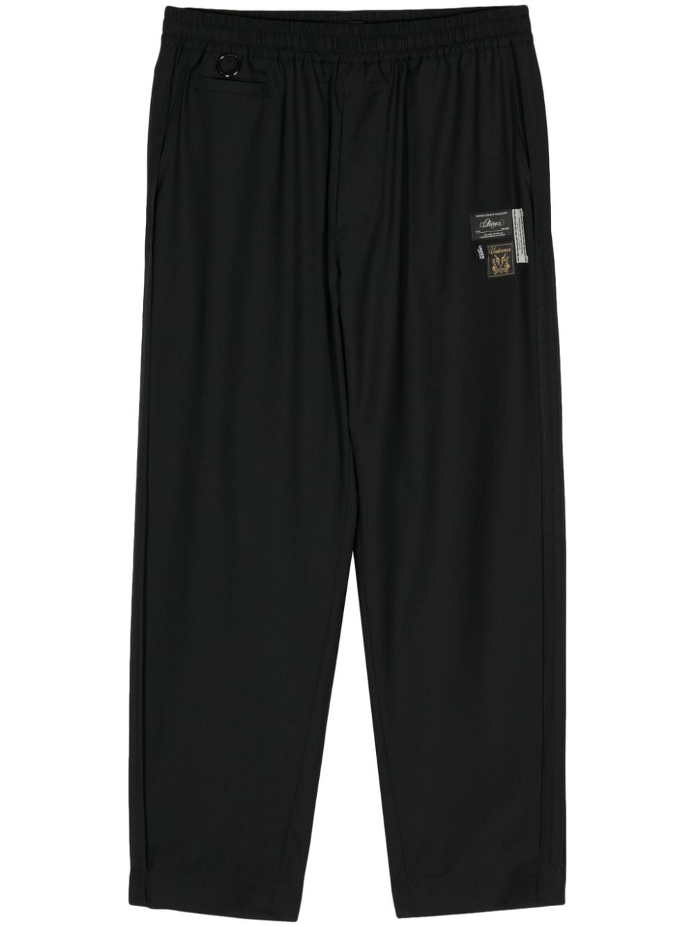 logo-applique straight trousers Highlights - Black - Wool blend - Applique logo - D-ring findings - Elasticated waistband - Two side slit pockets - Two rear welt pockets - Straight leg Imported Composition Polyester 50%, Wool 50%
