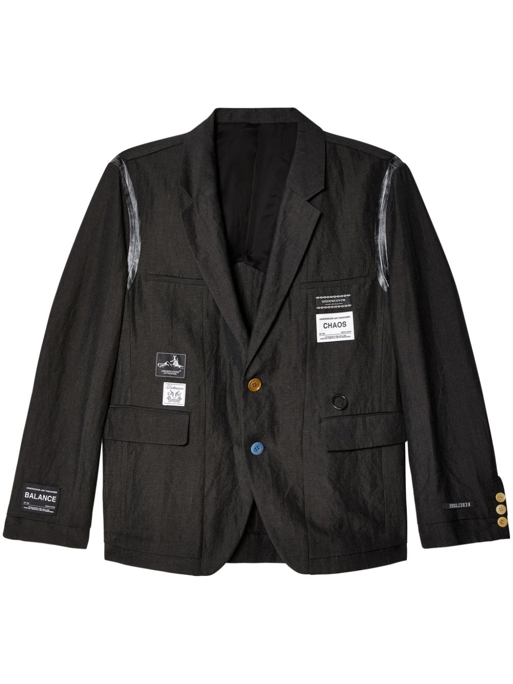logo-applique wool-linen jacket Highlights - Black - Linen-wool blend - Applique logo - Notched lapels - Front button fastening - Long sleeves - Buttoned cuffs - Two chest welt pockets - Two front flap pockets - Straight hem Imported Composition Wool 52%, Linen/Flax 48%