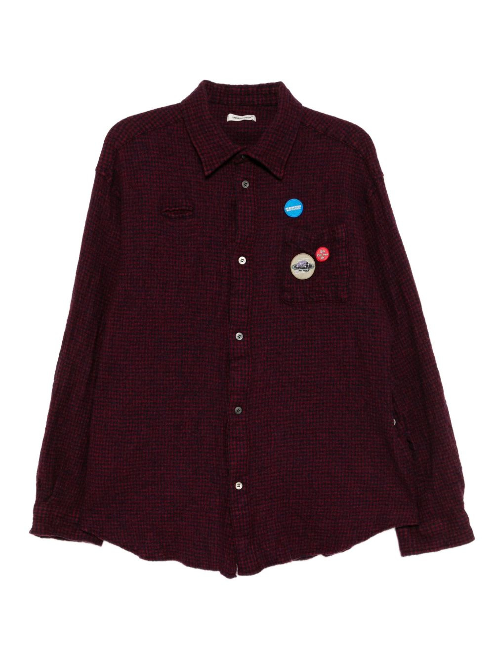 logo-embroidered shirt Highlights - Dark red - Front button fastening - Chest welt pocket Imported Composition Wool 100% SIZE & FIT Model measurements Height 6 ft 3 in(1.9 m) Bust/Chest 19.29 in(49 cm) Hips 38.58 in(98 cm) Waist 32.28 in(82 cm) FittingInformation Designed for a relaxed fit, this piece allows for comfort and movement when worn Made from a midweight non-stretch fabric Washing instructions Dry Clean Only