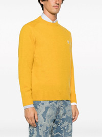 logo-patch wool jumper Highlights - Mustard yellow - Wool - Knitted construction - Logo patch at the chest - Cut-out detailing - Crew neck - Long sleeves - Cotton lining - Ribbed cuffs and hem Imported Composition Wool 100%, Cotton 100% SIZE & FIT Model measurements Height 6 ft 2 in(1.89 m) Bust/Chest 37.79 in(96 cm) Hips 37 in(94 cm) Waist 29.92 in(76 cm) Measurement CHEST 41.73 in(106 cm) SLEEVE LENGTH 28.74 in(73 cm) LENGTH 25.59 in(65 cm) FittingInformation Designed for a relaxed fit, this piece allows for comfort and movement when worn Made with a midweight knit, this piece offers some stretch This piece fits true to size – take your usual size Washing instructions Dry Clean Only
