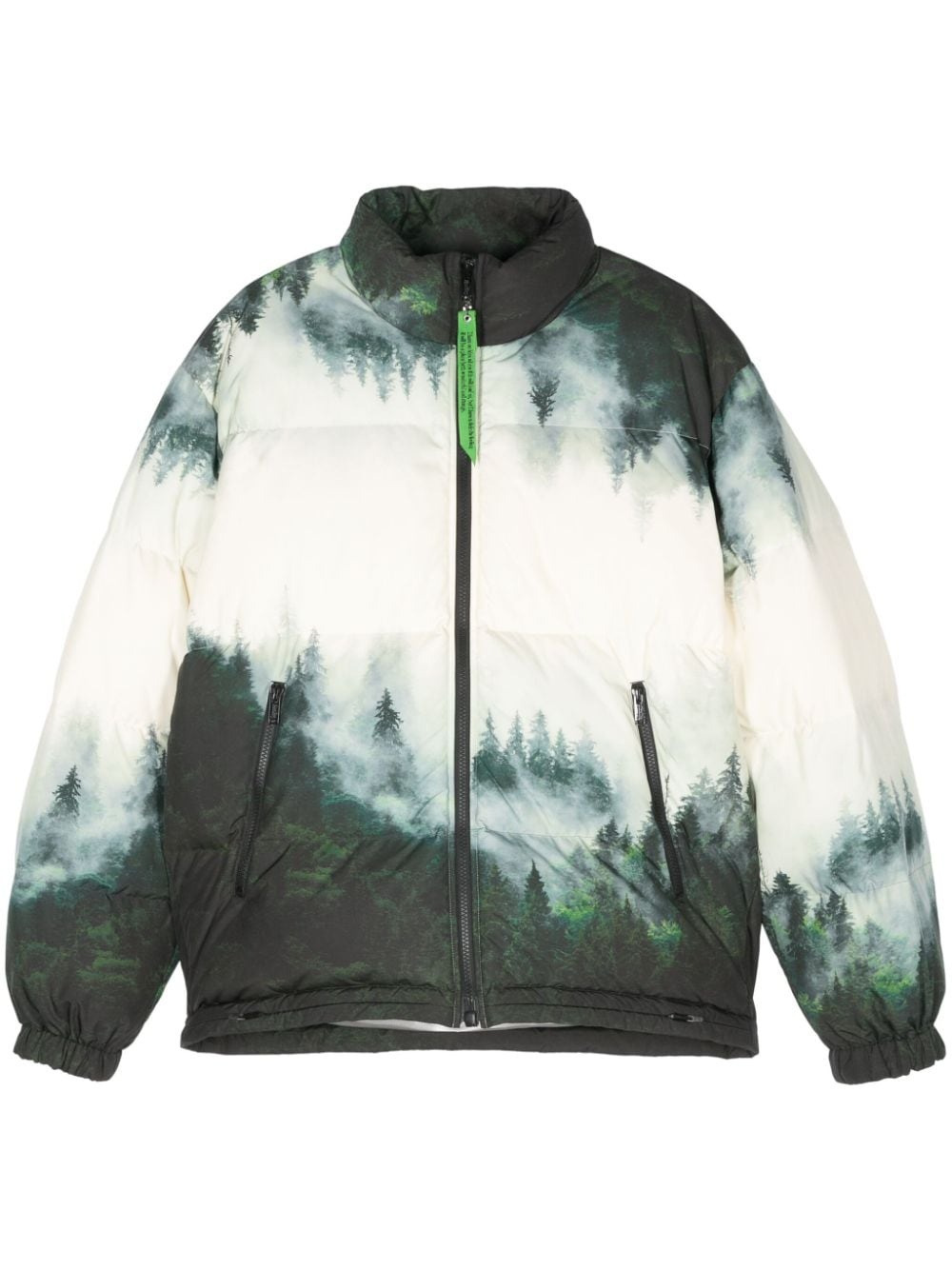 logo-print jacket Highlights - White/multicolour - Textured finish - Quilted - Front zip fastening - Padded design - Down blend filling - All-over forest print - Stand-up collar - Long sleeves - Two side zip-fastening pockets - Logo print to the rear - Straight hem Imported Composition Lining: Polyester 100%, Down 90%, Feather 10% Outer: Polyester 100% SIZE & FIT Measurement SLEEVE LENGTH 28.11 in(71.4 cm) LENGTH 31.69 in(80.5 cm) WIDTH 28.74 in(73 cm) Shoulder Width 23.3 in(59.2 cm) Washing instructions Dry Clean Only
