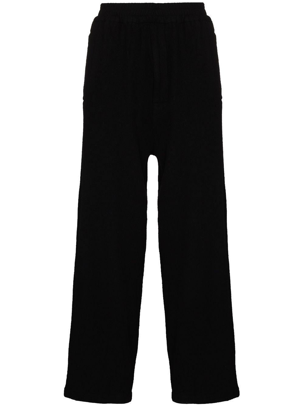 loose-fit wool track pants Undercover showcases its minimal side with these track pants. Spun from 100% wool, this pair is defined by its black colourway. Imported Composition Wool 100% SIZE & FIT Model measurements Height 6 ft 1 in(1.85 m) Bust/Chest 34.25 in(87 cm) Hips 33.85 in(86 cm) Waist 25.98 in(66 cm) FittingInformation This piece fits true to size. We recommend you get your regular size Cut for a loose fit Made with a mid-weight fabric Washing instructions Dry Clean Only