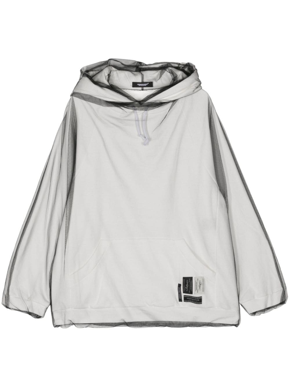 mesh-overlay cotton hoodie Highlights - White/black - Cotton - Jersey texture - Semi-sheer overlay - Logo patches to the front - Drawstring hood - Front pouch pocket - Long sleeves - Straight hem Imported Composition Outer: Nylon 100% Body: Cotton 100%