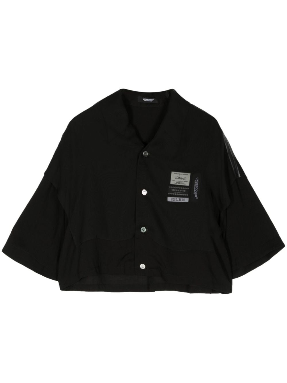 name-tag button-up shirt Highlights - Jet black - Georgette crepe - Name tag collage - Applique logo - Notched collar - Front button fastening - Drop shoulder - Short sleeves - Straight hem Imported Composition Lining: Rayon 100% Outer: Polyester 100% Washing instructions Dry Clean Only