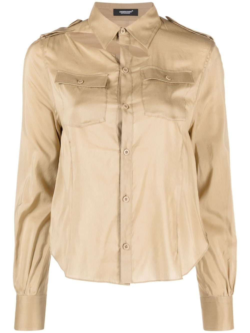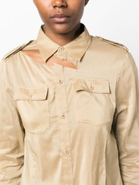 open-back cotton-silk blend shirt Highlights - Archive beige - Cotton-silk blend - Open back - Pointed flat collar - Long sleeves - Buttoned-cuff sleeves - Front button fastening - Two button-fastening chest pockets Imported Composition Cotton 74%, Silk 26% SIZE & FIT Model measurements Height 5 ft 11 in(1.8 m) Bust/Chest 31.49 in(80 cm) Hips 36.61 in(93 cm) Waist 24.4 in(62 cm) FittingInformation Designed for a slim fit that sits just away from the body offering a close yet comfortable fit Made from a lightweight non-stretch fabric This piece fits true to size – take your usual size Washing instructions Dry Clean Only