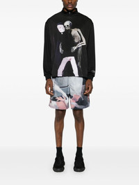 paint-print crinkled track shorts Highlights - Grey/multicolour - Crinkled finish - Paint-print - Embroidered logo to the rear - Elasticated waistband with internal drawstring - Thigh-length - Two side zip-fastening pockets - Rear zip-fastening pocket Imported Composition Nylon 100% SIZE & FIT Model measurements Height 6 ft 2 in(1.89 m) Bust/Chest 39.76 in(101 cm) Hips 37.4 in(95 cm) Waist 29.92 in(76 cm) FittingInformation Designed for relaxed fit, offering a comfortable loose fit over the leg The elasticated waist allows for a comfortable fit Made from a lightweight non-stretch fabric This piece fits true to size – take your usual size