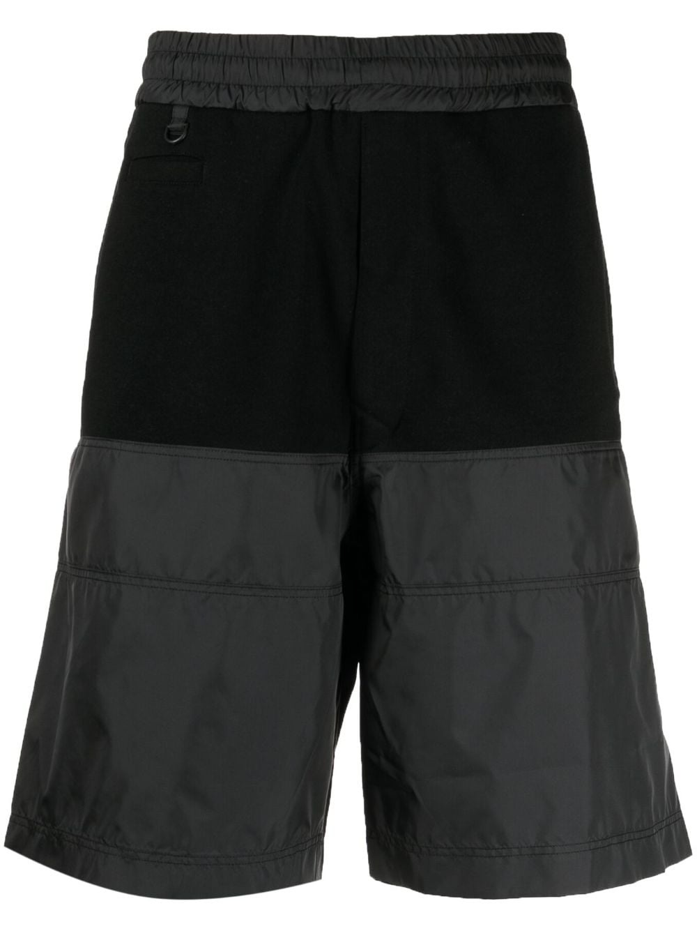 panelled-design elasticated-waistband track shorts Highlights - Black - Cotton blend - Panelled design - Elasticated waistband - Two side slit pockets - Front welt pocket - Rear zip fastening - Knee-length - Straight hem Imported Composition Polyester 100% Body: Cotton 100% SIZE & FIT Model measurements Height 6 ft 2 in(1.87 m) Bust/Chest 34.25 in(87 cm) Hips 36.22 in(92 cm) Waist 29.52 in(75 cm) FittingInformation Designed with a wide leg, offering a loose and roomy fit The elasticated waist allows for a comfortable fit Made from a midweight non-stretch fabric This piece fits true to size – take your usual size Washing instructions Hand Wash