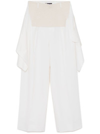 panelled straight trousers Highlights - Off-white - Wool - Concealed side hook and zip fastening - Belt loops - Knitted panels - Satin panel - Pleat detailing - Two side inset pockets - Straight leg Imported Composition Trims: Silk 64%, Polyester 36% Wool 100% Lining: Cupro 100%