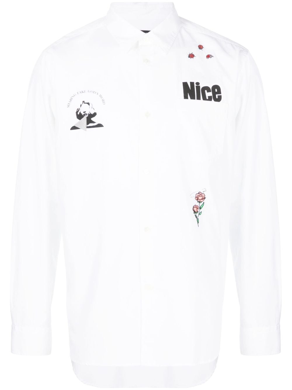 patch-detail cotton shirt Highlights - Off-white - Cotton - Patch detail - Slogan print to the front - Classic collar - Long sleeves - Buttoned cuffs - Front button fastening - Chest patch pocket - Curved hem Imported Composition Cotton 100% SIZE & FIT Model measurements Height 6 ft 2 in(1.87 m) Bust/Chest 34.25 in(87 cm) Hips 36.22 in(92 cm) Waist 29.52 in(75 cm) FittingInformation Designed to be unstructured, offering a loose fit throughout Made from a lightweight non-stretch fabric This piece fits true to size – take your usual size Washing instructions Hand Wash
