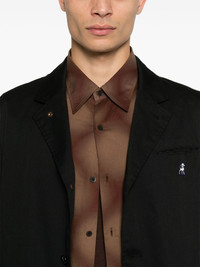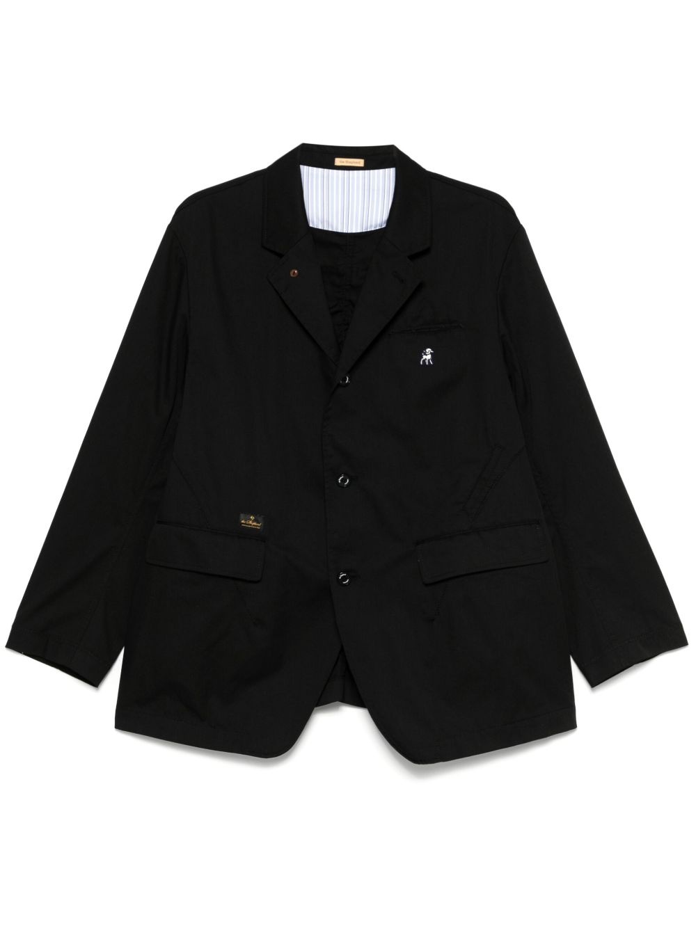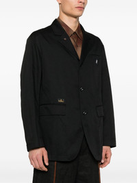 patch-detail jacket Highlights - Black - Front button fastening - Chest welt pocket - Two side flap pockets - English rear vents Imported Composition Outer: Polyester 65%, Cotton 35% Lining: Cotton 100% SIZE & FIT Model measurements Height 6 ft 1 in(1.85 m) Bust/Chest 35.82 in(91 cm) Hips 37.79 in(96 cm) Waist 29.13 in(74 cm) FittingInformation Designed for a regular fit, allowing for a comfortably loose fit throughout the body Made from a midweight non-stretch fabric Washing instructions Hand Wash