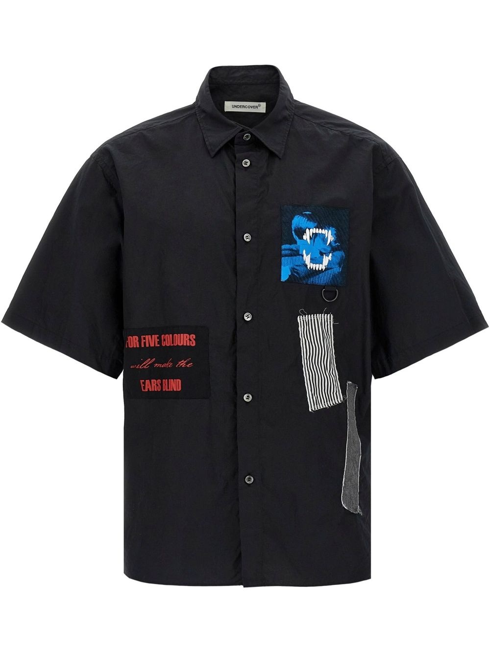 patch-embellished shirt Highlights - Black - Front button fastening - Ring embellishment - Classic collar - Short sleeves Imported Composition Cotton 100% Washing instructions Read Manufacturer Guidelines