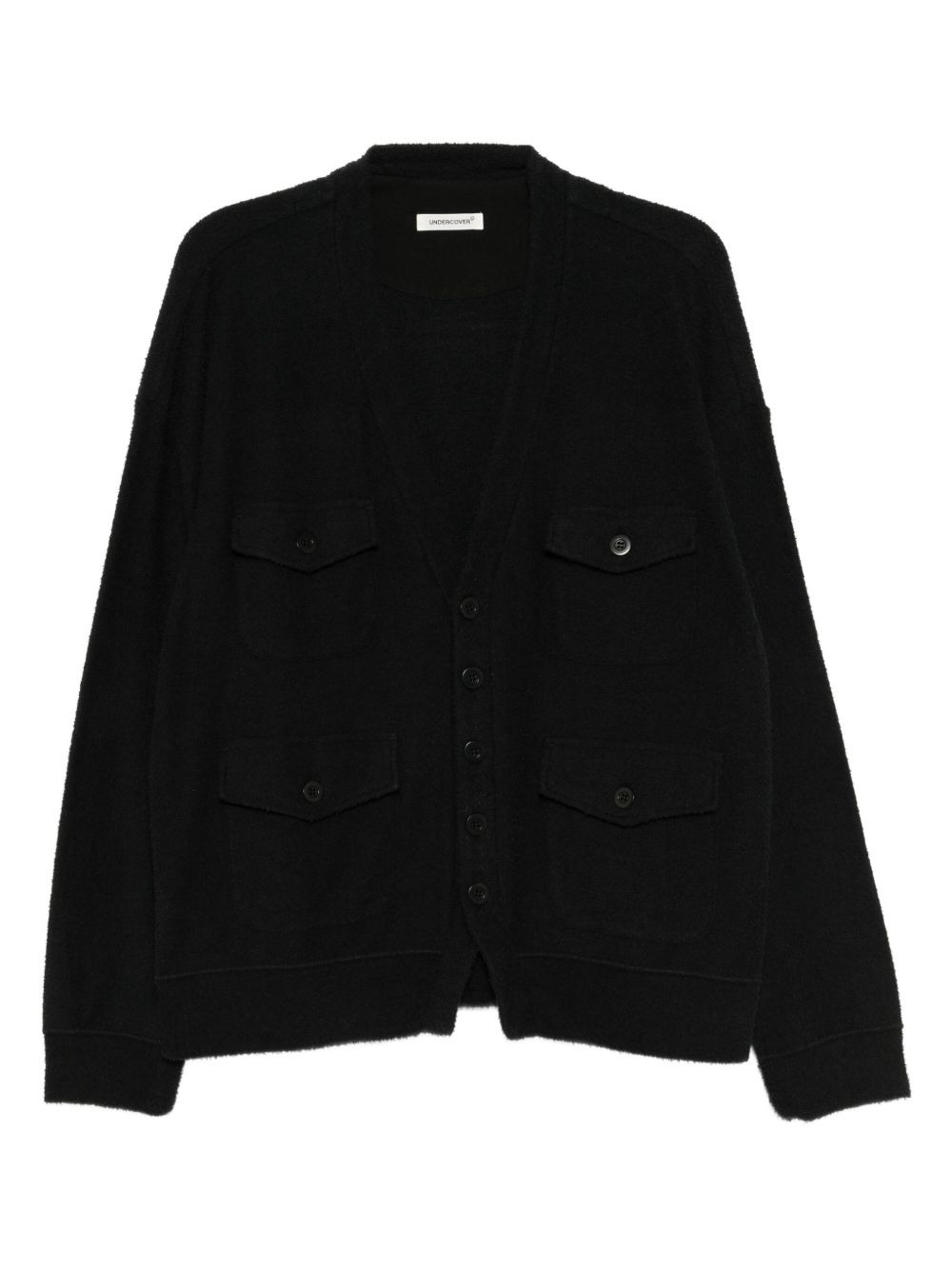 patch pockets cardigan Highlights - Black - Front button fastening - Four front flap pockets - V-neck - Long sleeves Imported Composition Lining: Cotton 100% Outer: Cotton 85%, Polyester 15%