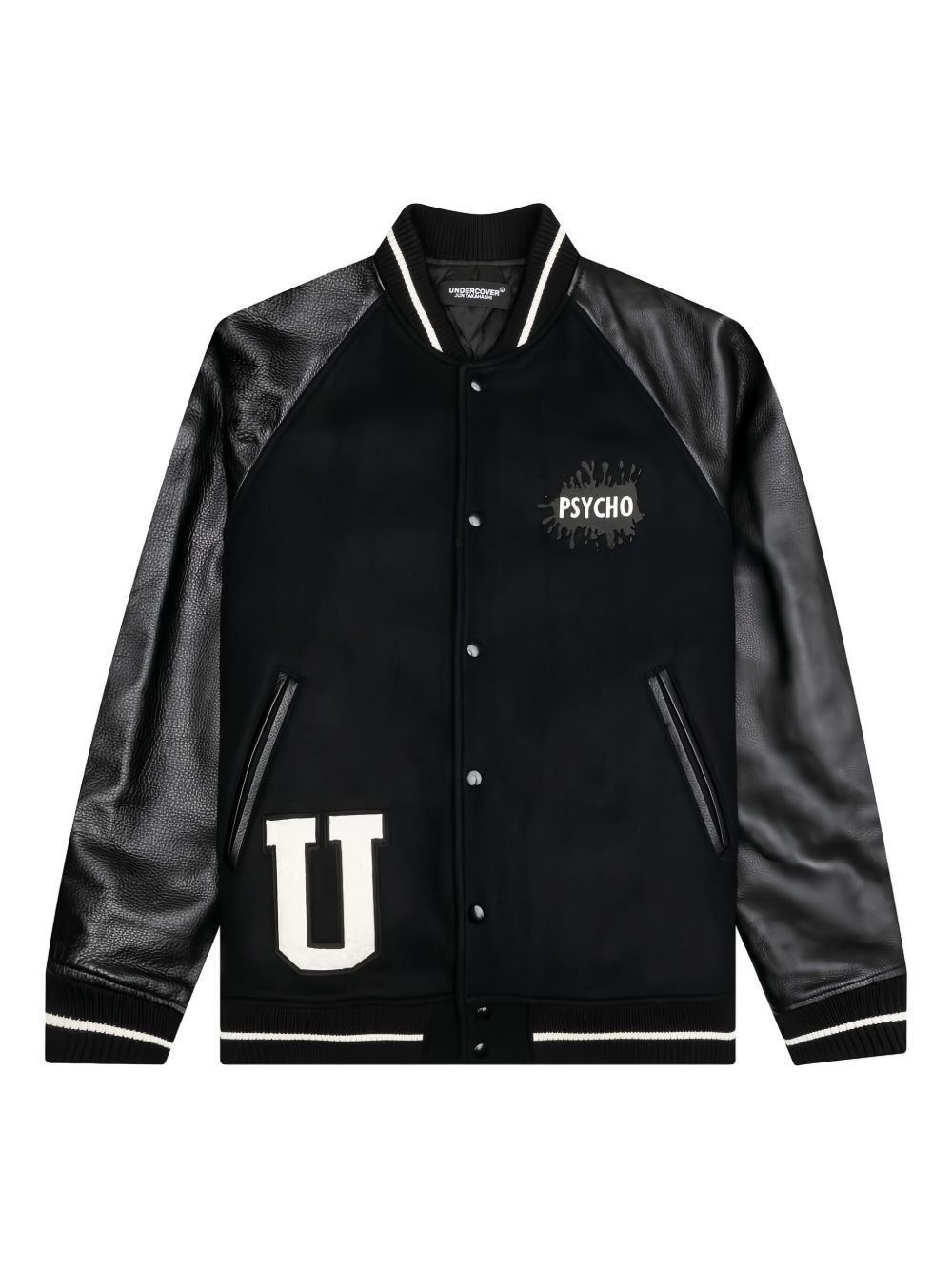 Psycho leather-sleeved bomber jacket Highlights - Black - Leather sleeves - Psycho embroidery - Ribbed trim - Front press-stud fastening - Ribbed collar Imported Composition Outer: Calf Leather 100%, Wool 90%, Nylon 10% Lining: Polyester 100%, Cupro 100% Washing instructions Read Manufacturer Guidelines