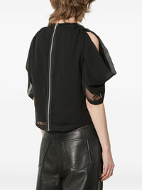 puff-sleeve sheer-panel top