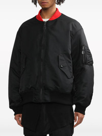 reversible bomber jacket Highlights - Black/white/red - Reversible - Check print - Contrasting trim - Ribbed band collar - Front zip fastening - Drop shoulder - Long sleeves - Sleeve zip pocket - Ribbed cuffs and hem Imported Composition Nylon 100% Washing instructions Read Manufacturer Guidelines
