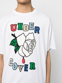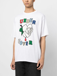 Rose cotton T-shirt Highlights - White - Cotton - Graphic print to the front - Round neck - Short sleeves - Straight hem Imported Composition Cotton 100% SIZE & FIT Model measurements Height 6 ft 2 in(1.87 m) Bust/Chest 31.49 in(80 cm) Hips 37.79 in(96 cm) Waist 27.95 in(71 cm) Measurement LENGTH 28.54 in(72.5 cm) WIDTH 23.62 in(60 cm) SLEEVE LENGTH 9.25 in(23.5 cm) Shoulder Width 21.65 in(55 cm) FittingInformation Designed to be unstructured, offering a loose fit throughout Made from a midweight non-stretch fabric, this piece offers minimal elasticity when worn This piece fits true to size – take your usual size Washing instructions Machine Wash
