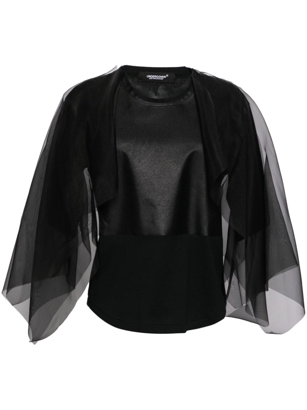 semi-sheer T-shirt Highlights - Black - Cotton blend - Round neck - Lace detailing - Semi-sheer construction - Short sleeves - Curved hem Imported Composition Outer: Cotton 100% Polyester 100% Washing instructions Dry Clean Only