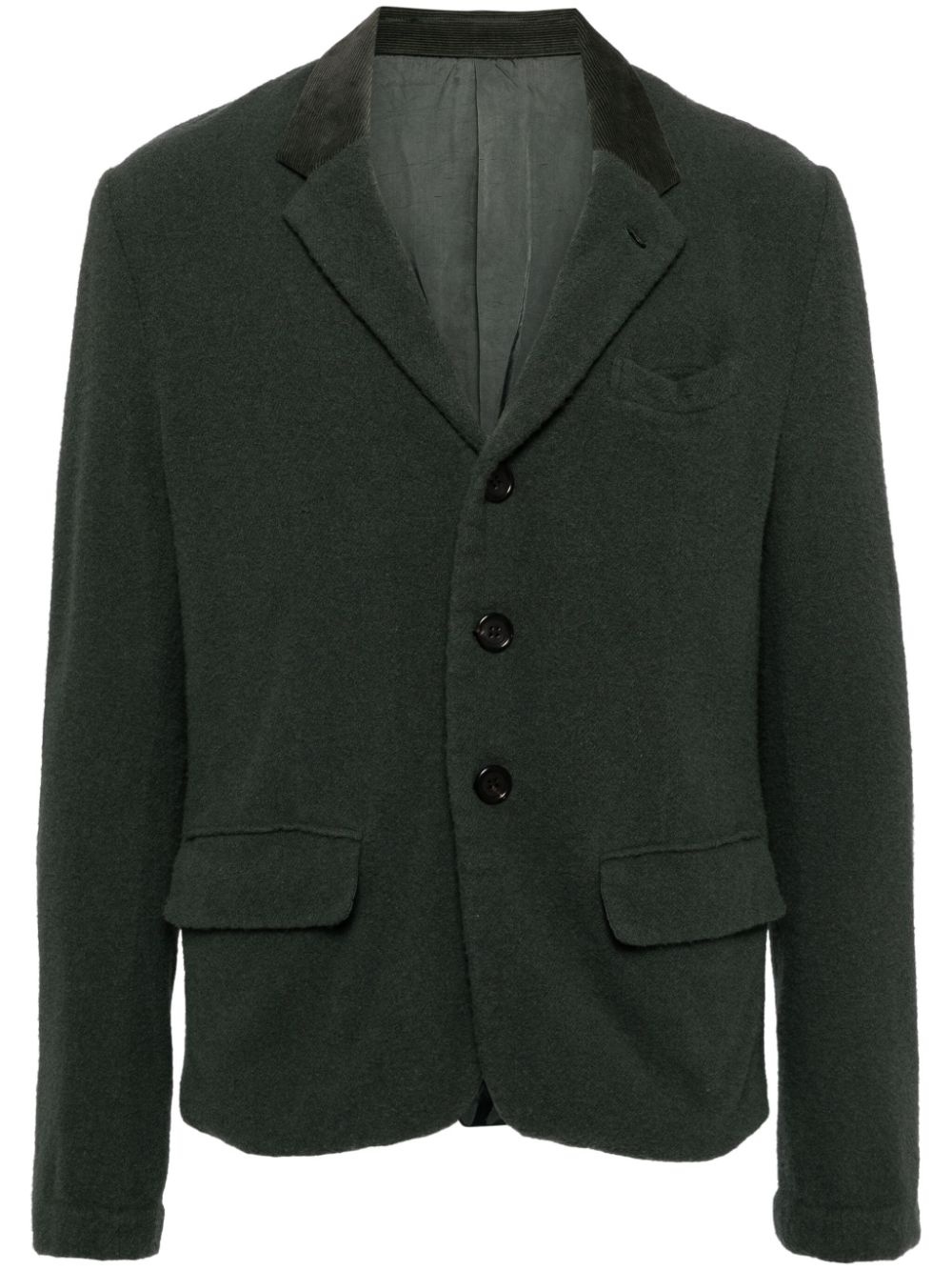 single breasted jacket Highlights - Wool blend - Grey khaki - Button fastening - Front flap pocket - Raw-cut finish - Long sleeves - Buttoned cuffs - Straight hem - Notched lapels - Full lining Imported Composition Lining: Cupro 100% Outer: Wool 90%, Nylon 10% Washing instructions Dry Clean Only