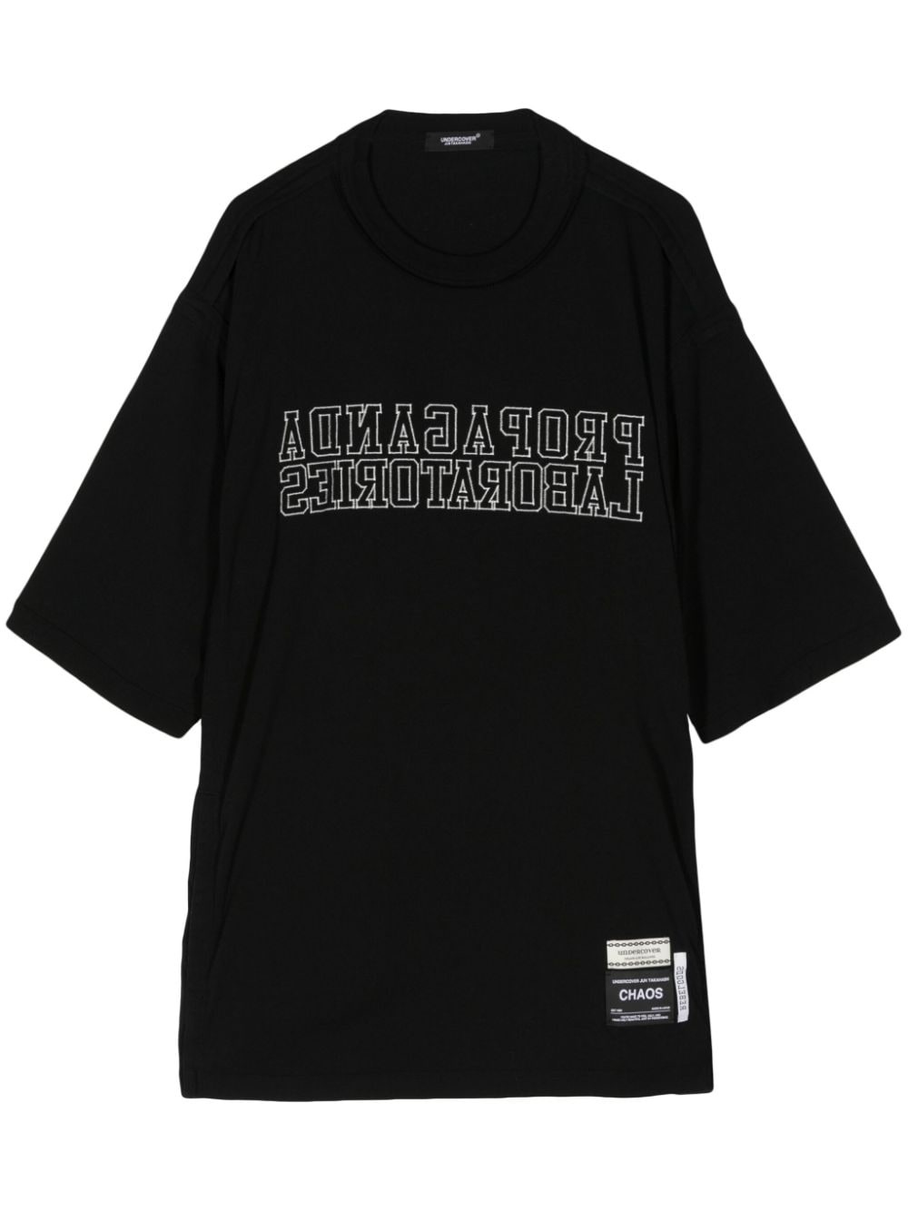 slogan-embroidered cotton T-shirt black/white cotton soft jersey embroidered slogan applique logo crew neck short sleeves straight hem When buying this unisex item, keep in mind that it is graded in standard men's sizing. Imported Composition Cotton 100%