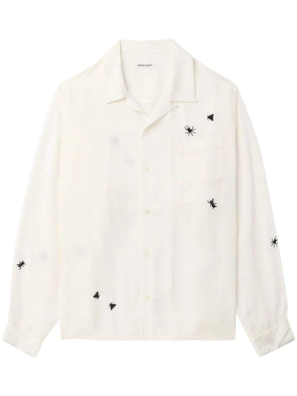 spider-embroidery semi-sheer shirt Highlights - Off-white - Semi-sheer construction - Notched collar - Front button fastening - Drop shoulder - Long sleeves - Buttoned cuffs - Chest patch pocket - Straight hem Imported Composition Cupro 64%, Polyester 36%