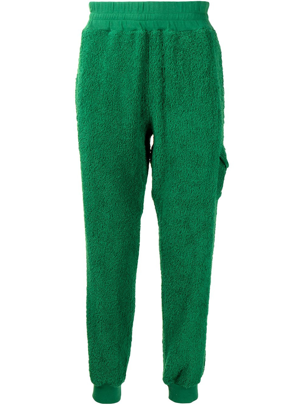 textured cotton trousers grass green cotton textured finish tapered design elasticated waistband elasticated ankles two side inset pockets side flap pocket two rear flap pockets Imported Composition Cotton 100% SIZE & FIT Model measurements Height 6 ft 0 in(1.84 m) Bust/Chest 35.43 in(90 cm) Hips 35.82 in(91 cm) Waist 28.74 in(73 cm) FittingInformation This piece fits true to size. We recommend you get your regular size Designed to be loose over the leg with a fitted waist and hem Made with a mid-weight fabric Washing instructions Hand Wash