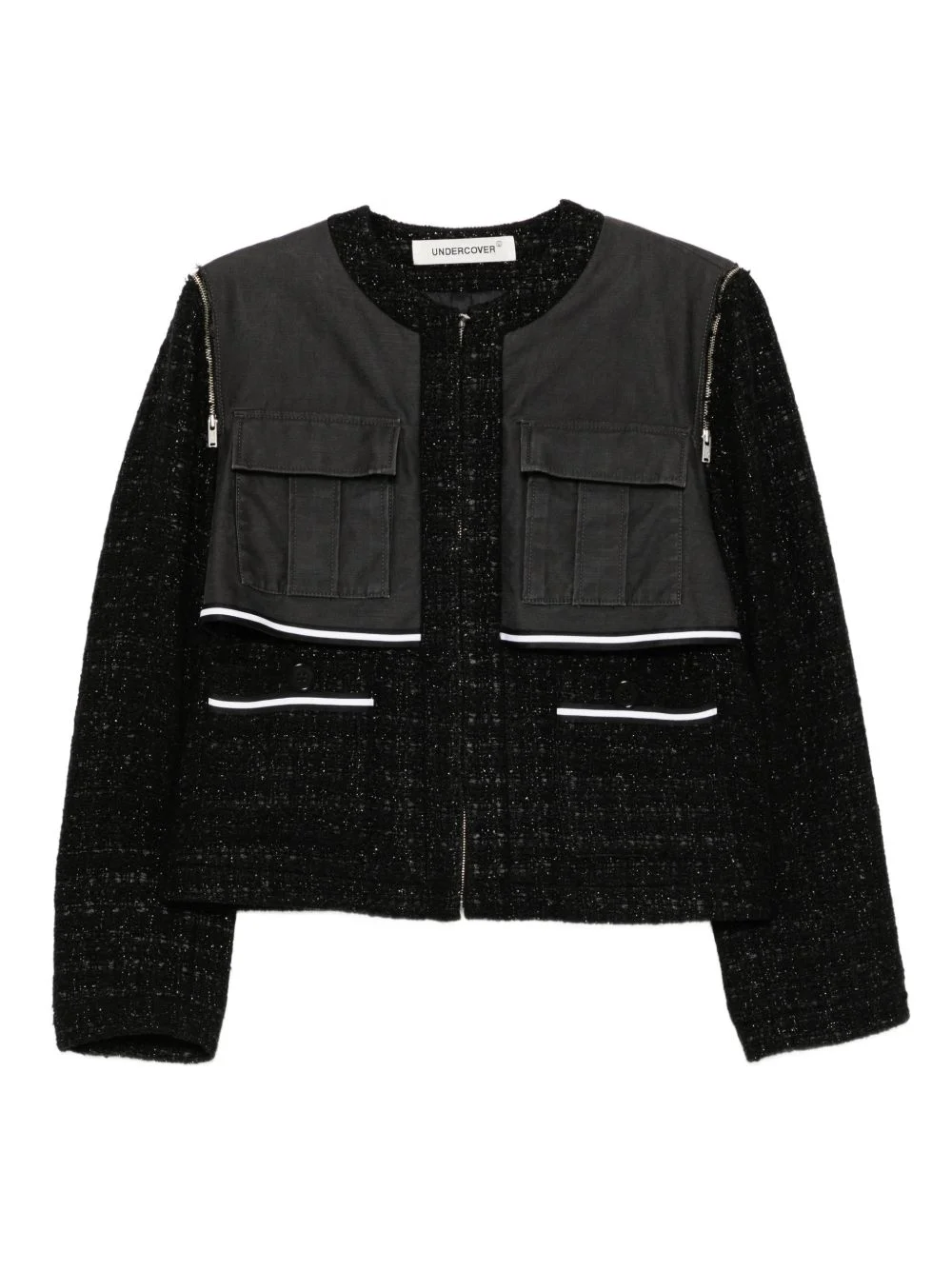 tweed jacket Highlights - Black - Concealed front zip fastening - Two chest flap pockets - Two front patch pockets - Shoulder zip fastening Imported Composition Outer: Acrylic 43%, Polyester 26%, Wool 26%, Cupro 4%, Nylon 1% Lining: Cupro 100% Cotton 100% SIZE & FIT Model measurements Height 5 ft 10 in(1.78 m) Bust/Chest 29.52 in(75 cm) Hips 34.25 in(87 cm) Waist 24.4 in(62 cm) FittingInformation Designed for a boxy fit, intended for a loose fit throughout Made from a midweight non-stretch fabric Washing instructions Dry Clean Only