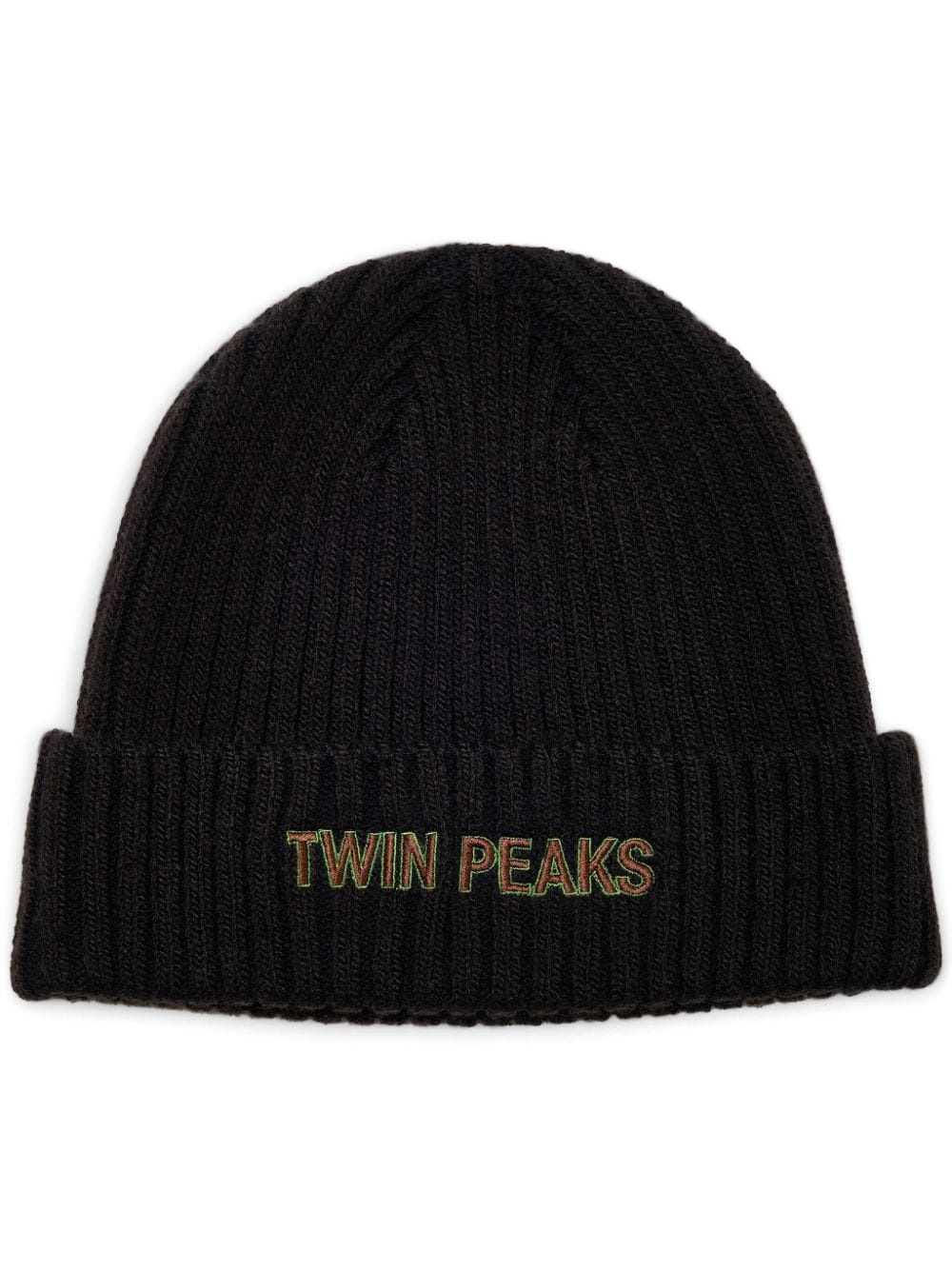 Twin Peaks beanie hat Highlights - Black - Ribbed knit - Embroidered design - Turn-up brim - Pull-on style Imported Composition Acrylic 100% Washing instructions Read Manufacturer Guidelines