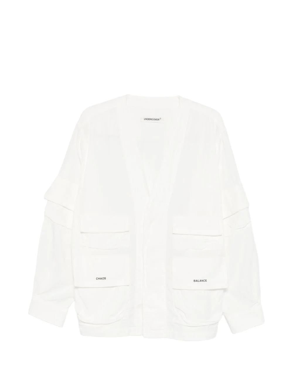 V-neck jacket Highlights - Off-white - V-neck - Front pockets - Long sleeves - Buttoned cuffs Imported Composition Cotton 100% Washing instructions Hand Wash