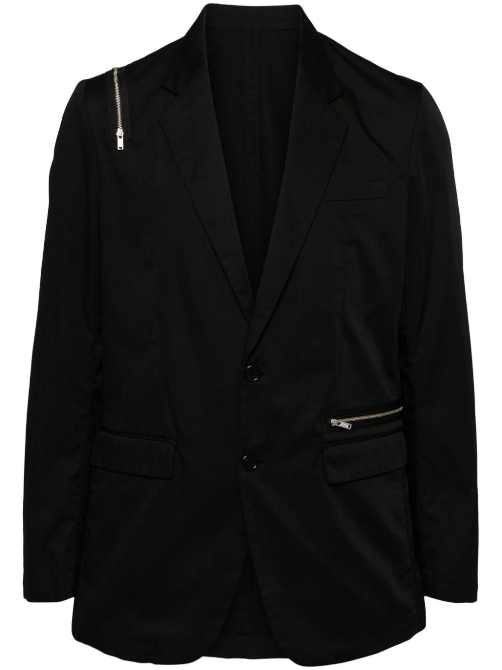 zip details blazer Highlights - Black - Button fastening - Zip details - Front flap pocket - Notched lapels - Buttoned cuffs - Long sleeves - Straight hem - Full lining Imported Composition Polyester 65%, Cotton 35% SIZE & FIT FittingInformation Designed for a slim fit, offering a comfortable fit that sits just away from the body The vented hem offers movement at the rear Made from a midweight non-stretch fabric