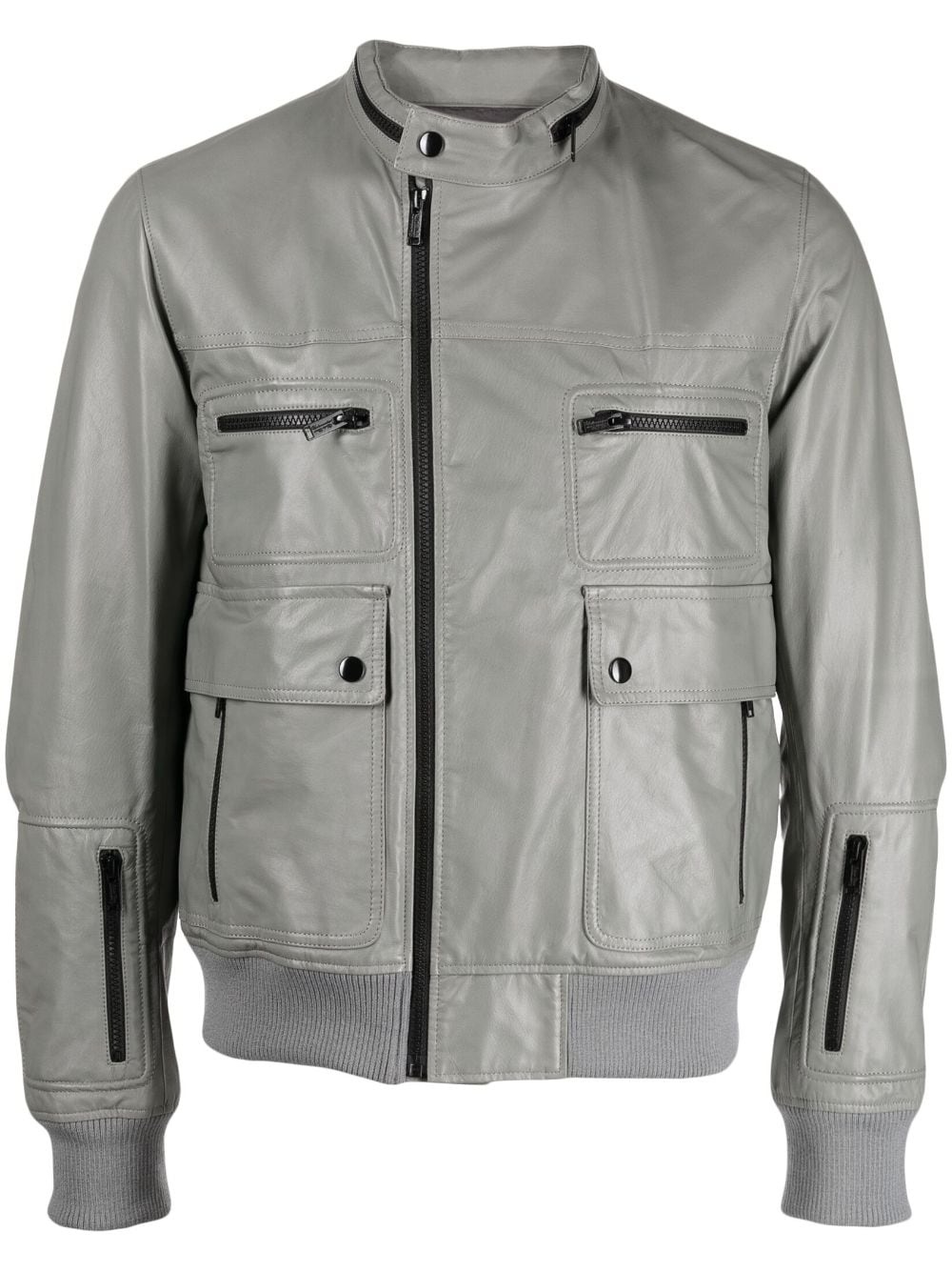zip-up biker jacket Undercover presents this grey biker jacket for its AW23 collection. Boasting a stand collar with a stowaway hood, it is complete with multiple pockets for added functionality. Imported Composition Lining: Cupro 100% Body: Bos Taurus 100% Inner: Polyester 100% SIZE & FIT Model measurements Height 6 ft 2 in(1.87 m) Bust/Chest 34.25 in(87 cm) Hips 36.22 in(92 cm) Waist 29.52 in(75 cm) FittingInformation Designed to be unstructured, offering a loose fit throughout The ribbed hem offers a close, comfortable fit Firm leather offering little flexibility to maintain its durability and sturdiness This piece fits true to size – take your usual size Washing instructions Do Not Wash/Do Not Dry Clean