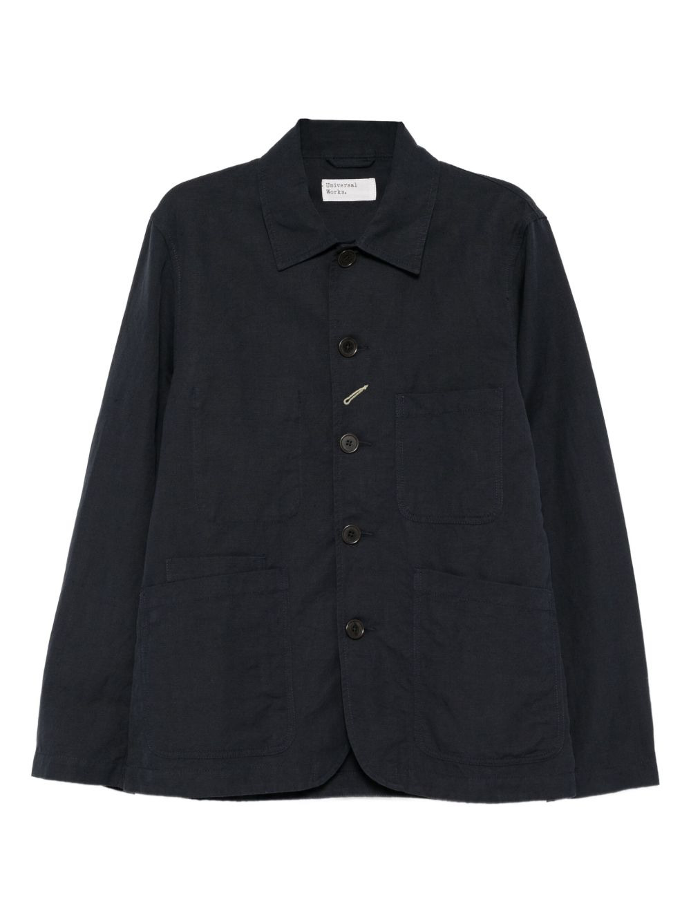 Bakers linen jacket Highlights - Navy blue - Front button fastening - Long sleeves - Chest patch pocket - Two front patch pockets Imported Composition Linen/Flax 62%, Cotton 38% SIZE & FIT Model measurements Height 6 ft 2 in(1.87 m) Bust/Chest 33.07 in(84 cm) Hips 35.43 in(90 cm) Waist 26.77 in(68 cm) FittingInformation Designed for a regular fit, allowing for a comfortably loose fit throughout the body Made from a midweight non-stretch fabric