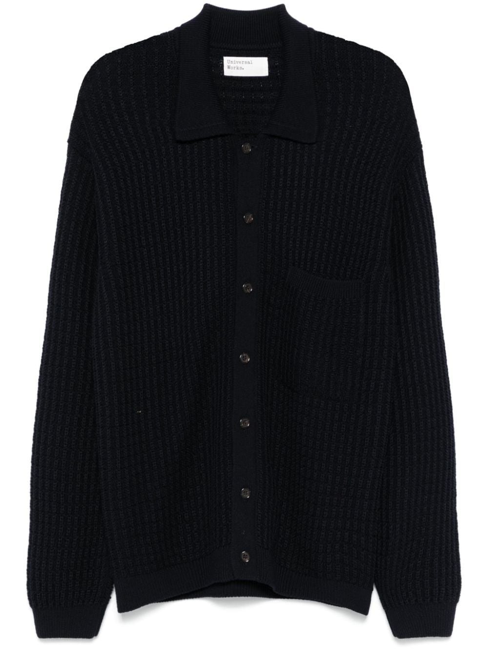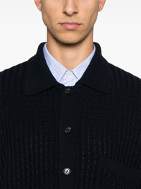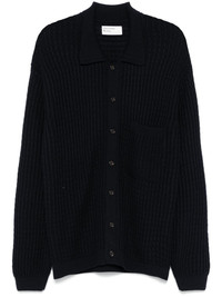 classic-collar cardigan Highlights - Navy blue - Merino wool blend - Waffle knit - Ribbed panelling - Classic collar - Front button placket - Drop shoulder - Long sleeves - Chest patch pocket - Ribbed cuffs and hem Imported Composition Merino 51%, Acrylic 49% SIZE & FIT Model measurements Height 6 ft 2 in(1.87 m) Bust/Chest 36.22 in(92 cm) Hips 35.43 in(90 cm) Waist 29.13 in(74 cm) FittingInformation Designed for a relaxed fit, this piece allows for comfort and movement when worn The ribbed hem offers a close, comfortable fit Made with a midweight knit, this piece offers some stretch