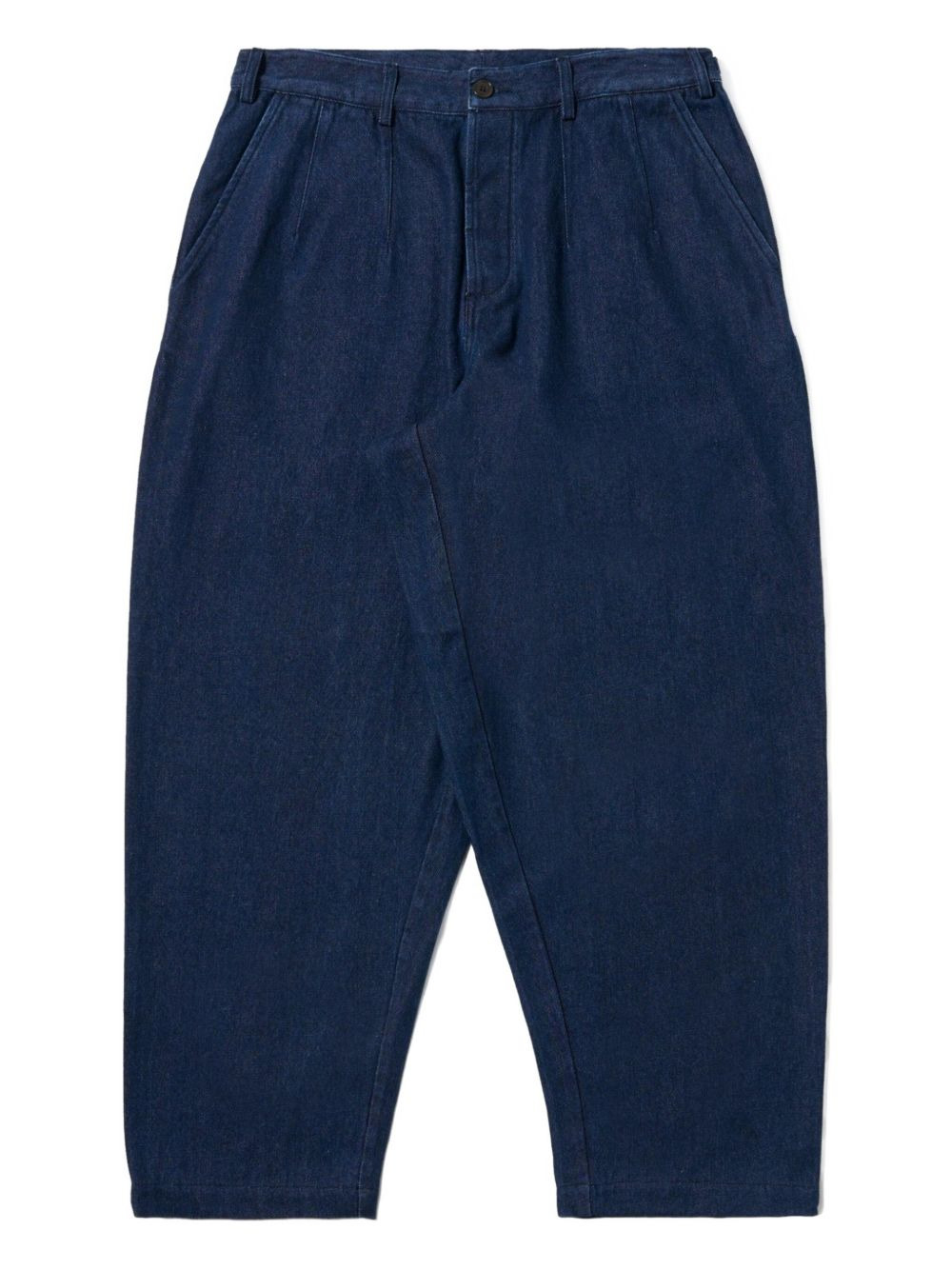 wide-leg trousers Highlights - Blue - Pleated front - Front button fastening - Belt loops - Side slit pockets - Rear patch pockets Imported Composition Cotton 100% Washing instructions Read Manufacturer Guidelines
