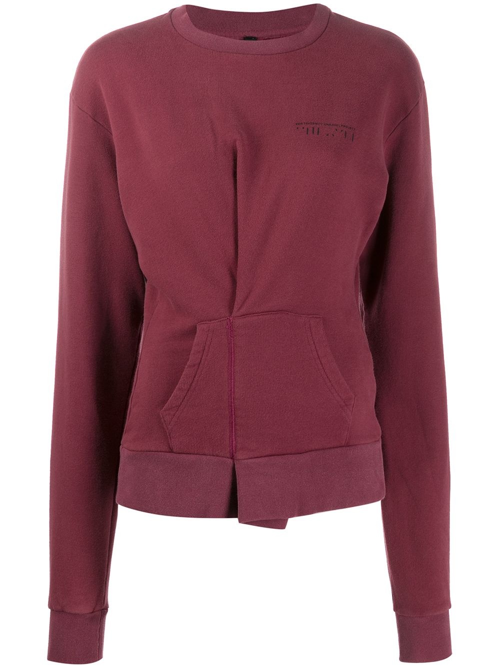 folded detail sweatshirt Bordeaux cotton folded detail sweatshirt from Unravel featuring a logo to the chest, a ribbed crew neck, a kangaroo pocket, long sleeves and a ribbed hem and cuffs. Made in Italy Composition Cotton 100% SIZE & FIT Model measurements Height 5 ft 9 in(1.76 m) Bust/Chest 31.88 in(81 cm) Hips 37 in(94 cm) Waist 24.4 in(62 cm) FittingInformation This piece fits true to size. We recommend you get your regular size Cut for a slim fit Made with a mid-weight fabric