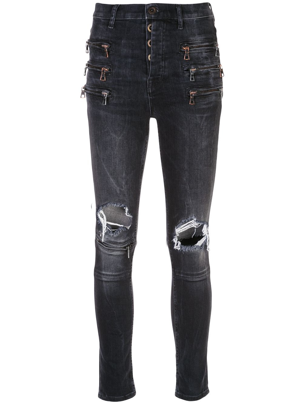 zipped knee holes skinny jeans