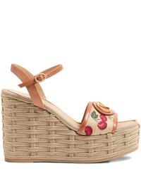 120mm VLogo Signature Cherryfic-print wedge sandals Highlights - Sand beige - Buckle-strap fastening - High wedge heel - Branded insole - Platform sole Imported Composition Outer: Calf Leather 100%, Canvas 100% Sole: Rubber 100% Lining: Calf Leather 100% SIZE & FIT Measurement HEEL 4.72 in(12 cm)