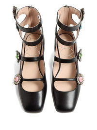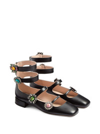 20mm Preshoes ballet flats Highlights - Black - Grained texture - Crystal and logo-embellished buttons - Rear zip fastening - Low block heel - Multi straps design - Square toe - Branded leather insole - Leather sole Made in Italy Composition Outer: Kid Leather 100% Sole: Calf Leather 100% Lining: Goat Skin 100%