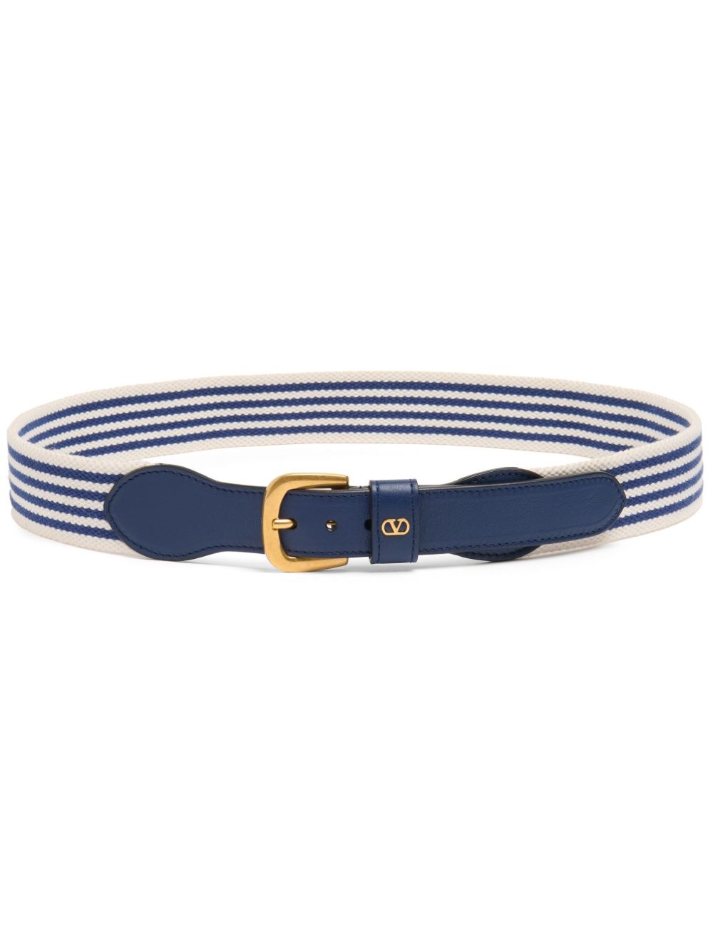 35mm VLogo Signature belt Highlights - Midnight blue/white - Calf leather/cotton blend - Colour-block panelled design - Horizontal stripe pattern - Buckle fastening - Vlogo signature plaque - Punched holes - Adjustable fit Made in Italy Composition Calf Leather 100%, Cotton 71%, Polyester 18%, Other fibres 7%, Polyamide 4%