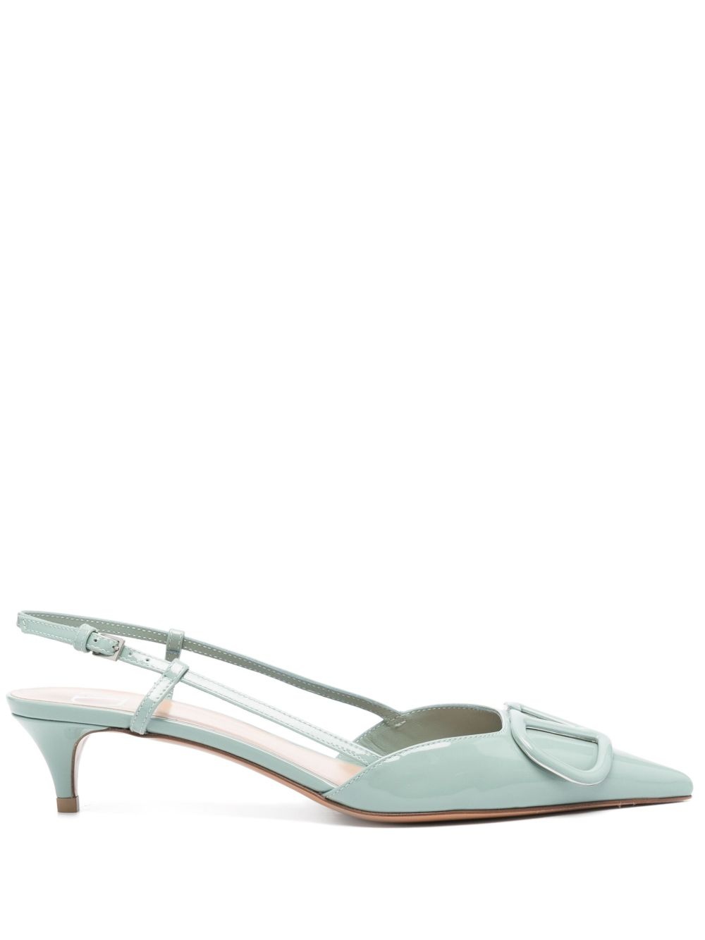 40mm VLogo Signature slingback pumps Highlights - Teal blue - Buckle-fastening slingback strap - Kitten heel - Branded footbed - This piece comes complete with a protective dust bag. Made in Italy Composition Sole: Calf Leather 100% Lining: Calf Leather 100% Outer: Patent Calf Leather 100% SIZE & FIT Measurement HEEL 1.57 in(4 cm)