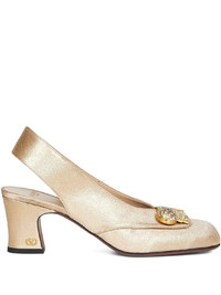 60mm Adamantine crystal-embellished slingback pumps Highlights - Gold-tone - Slingback design - Crystal-embellished metal accessory - Rounded toe - Fabric-covered heel - Metal detail at heel Made in Italy Composition Outer: Glitter 100%, Cotton 64%, Silk 36% Sole: Rubber 100%, Leather 100% Lining: Leather 100% SIZE & FIT Measurement HEEL 2.36 in(6 cm)