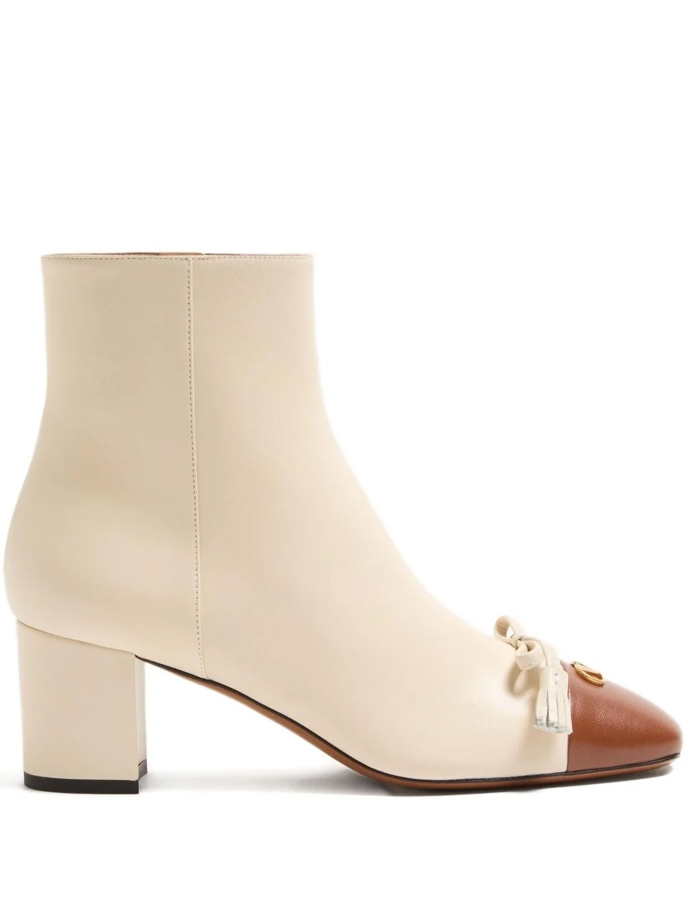 60mm Valet Du Roi ankle boots Highlights - Valentino ready to wear - Light beige - Side zip fastening - Mid block heel - Maxi vlogo signature - Bow detailing Made in Italy Composition Outer: Kid Leather 100% Sole: Calf Leather 100% Lining: Goat Skin 100%