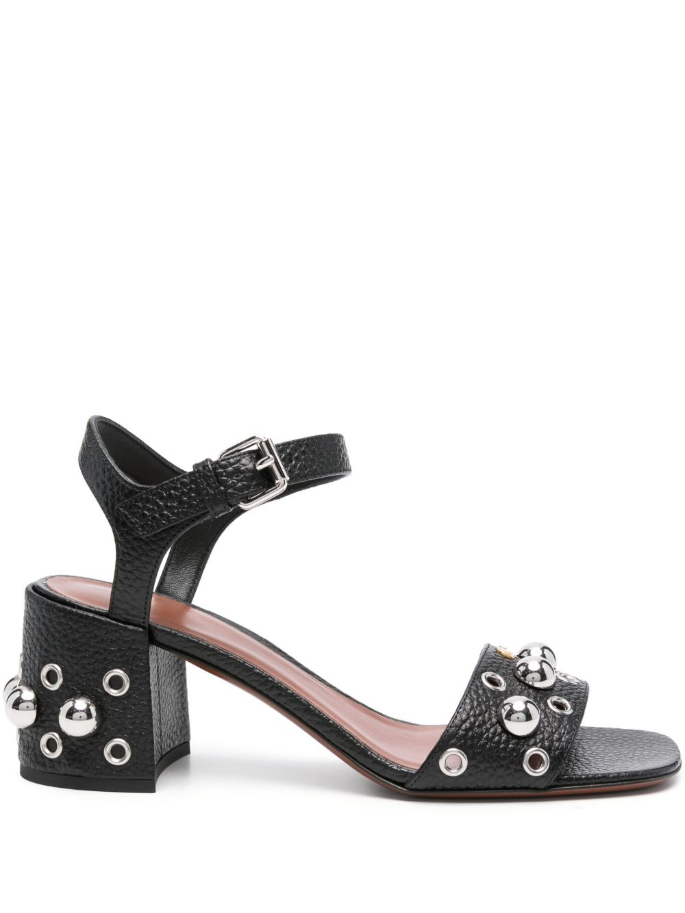65mm Nellcote sandals Highlights - Black - Buckle-fastening ankle strap - Stud detailing - Eyelet embellishment - 65mm block heel Made in Italy Composition Outer: Calf Leather 100% Sole: Calf Leather 100% Lining: Calf Leather 100% SIZE & FIT Measurement HEEL 2.55 in(6.5 cm)