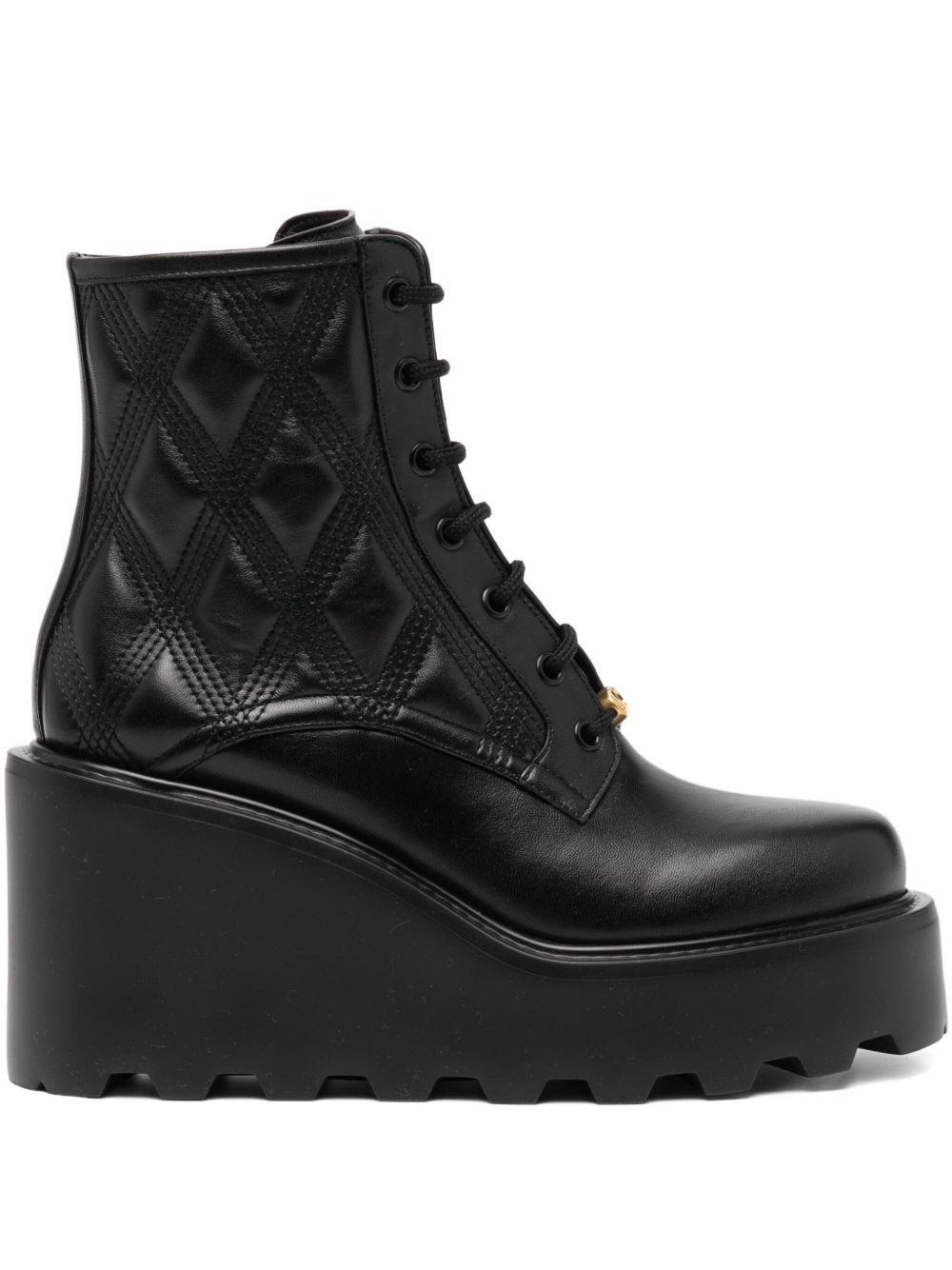 95mm Quiltie 67 boots Highlights - Black - Side zip fastening - Lace up fastening - Round toe - Branded insole Made in Italy Composition Outer: Leather 100% Lining: Leather 100% Sole: Rubber 100% SIZE & FIT Measurement HEEL 3.54 in(9 cm) PLATFORM 1.57 in(4 cm)