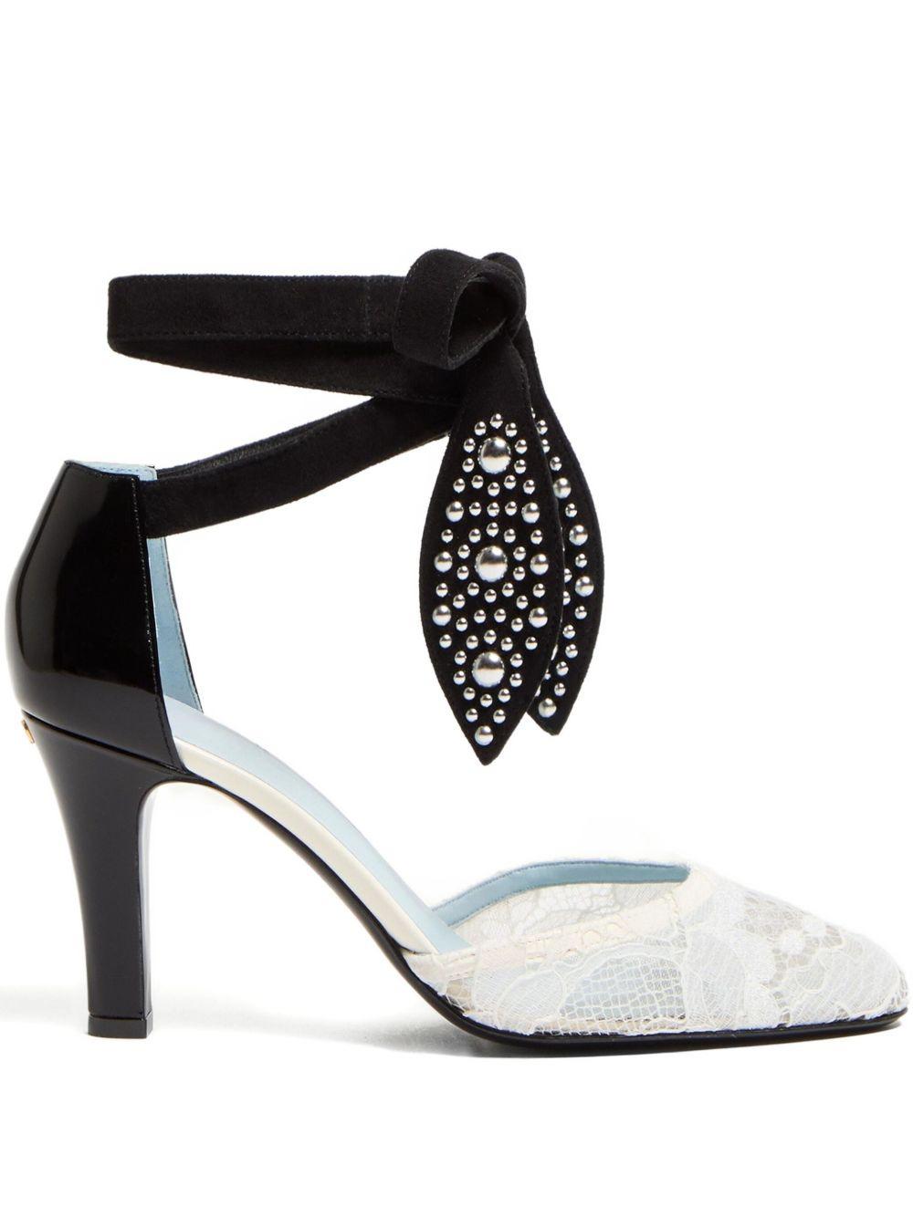 85mm Foliefoliage pumps Highlights - White - Tie-fastening ankle strap - Pointed toe - Branded insole - Stiletto heel Made in Italy Composition Sole: Calf Leather 100% Outer: Fabric 100%, CALFSKIN 100% Lining: Calf Leather 100% SIZE & FIT Measurement HEEL 3.34 in(8.5 cm)