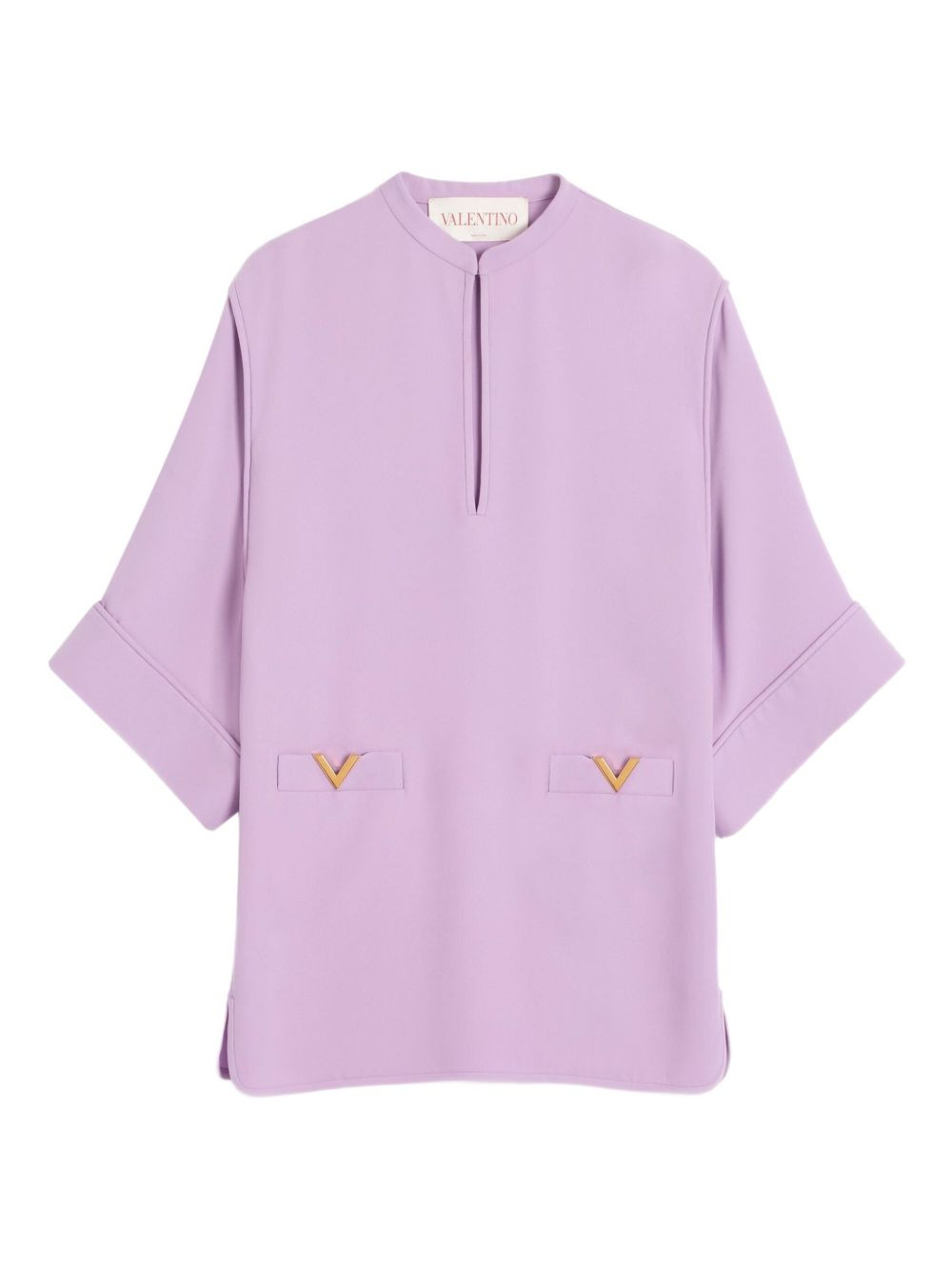 V-detail mini dress Highlights - Lilac - Silk - Keyhole neckline - Wide sleeves - V-detail pockets - Mock neck Made in Italy Composition Silk 100% Washing instructions Read Manufacturer Guidelines